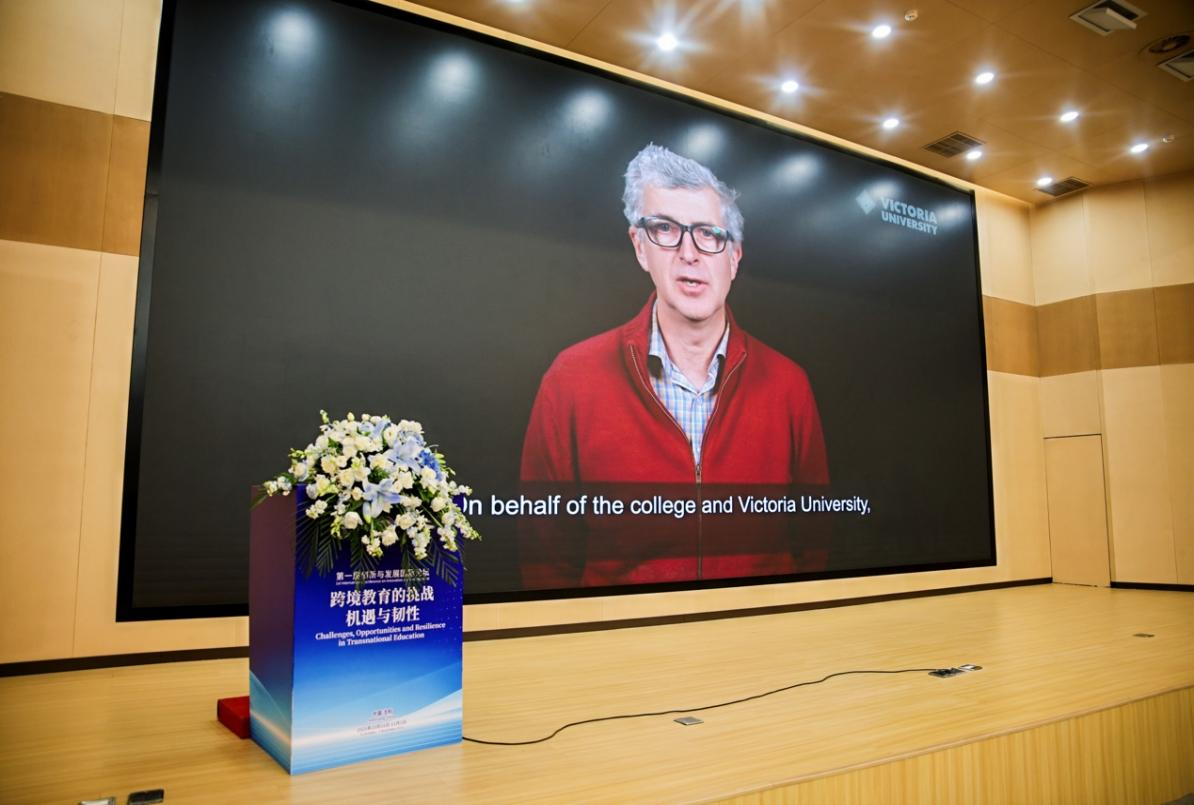 10月31日上午,论坛开幕式在辽宁大学纪检监察与法学部科研楼160报告厅举行。开幕式由辽宁大学亚澳商学院院长赵德起教授主持,辽宁大学党委常委、副校长仇焕广教授致开幕词。仇校长在致辞中代表学校向远道而来的各位嘉宾表示热烈欢迎,并对长期支持两校合作的各界同仁致以衷心感谢。他简要介绍了辽宁大学作为国家“双一流”和“211工程”建设高校的学科布局与人才培养体系,特别强调了国际化办学是学校发展的重要底色,并强调,本届论坛既是对两校深厚合作的总结与致敬,更是面向未来探索国际教育创新路径的重要平台。他表示,期待以此次论坛为契机,进一步深化国际合作,共同推动高等教育高质量发展。接着,维多利亚大学常务副校长Andy Hill教授线上致辞。他回顾了维多利亚大学与辽宁大学长达二十六年的成功合作,并指出本届论坛标志着双方合作关系从教学延伸至科研协作的新里程碑。维多利亚大学副校长Rob Strathdee教授通过线上方式致辞。他强调,本次论坛聚焦跨国教育、教学创新与可持续发展等核心议题,为全球学者、行业专家与青年学子搭建了高层次对话平台。