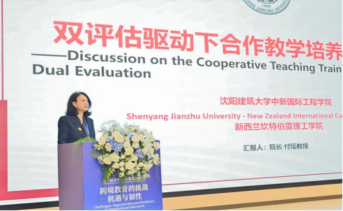 沈阳建筑大学中新国际工程学院院长付瑶教授作题为“双评估驱动下合作教学培养方案的探讨”的报告,剖析了双评估机制对合作办学的促进作用,并分享了课程建设与教育创新的实践思考。