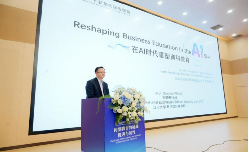 辽宁大学新华国际商学院院长王晓辉教授以“Reshaping Business Education in the AI Era”为题,围绕“AI时代商科教育应培养什么样的人才、如何培养”这一核心问题,从“重塑、融合、引领”三大视角进行了系统阐述。