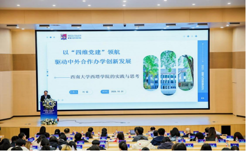 西南大学西塔学院党委书记刘猛以“以‘四维党建’领航驱动中外合作办学创新发展——西南大学西塔学院的实践与思考”为题作报告,从党建引领的独特视角出发,深入阐述了中外合作办学机构在创新发展中面临的挑战、实践路径与理论思考。