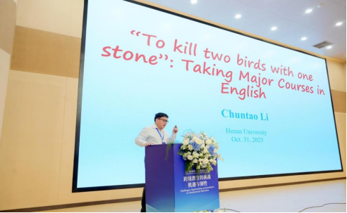 河南大学高级金融学院副院长李春涛教授以“‘To Kill Two Birds with One Stone’:Taking Major Courses in English”为题,结合生动案例,深入剖析了在中外合作项目中实施全英文专业课程教学的关键作用与有效策略,阐明了其在学术与语言能力培养上的双重价值。